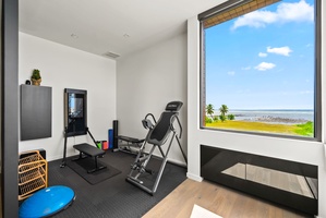 Private in-home gym with panoramic views ensures you never miss a workout—even on island time.