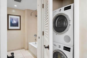 Honua Kai Konea 230/232 includes in-unit laundry with a stacked washer and dryer for added convenience