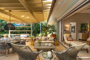 Dine under the stars or shaded canopy—this lanai is made for memorable gatherings.