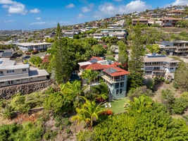 Bird’s-eye view of Kahala Hills Estate with proximity to coastline and Diamond Head.