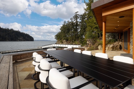 Relax on your private waterfront terrace with stunning lake views and elegant outdoor dining perfectly positioned for memorable meals.