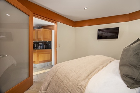 Sink into crisp linens in your private bedroom suite, with a fully equipped kitchen just steps away for midnight snacks.