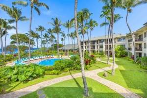 Your private lanai overlooks swaying palms and sparkling turquoise waters, perfect for morning coffee or romantic dinners under Hawaiian skies.