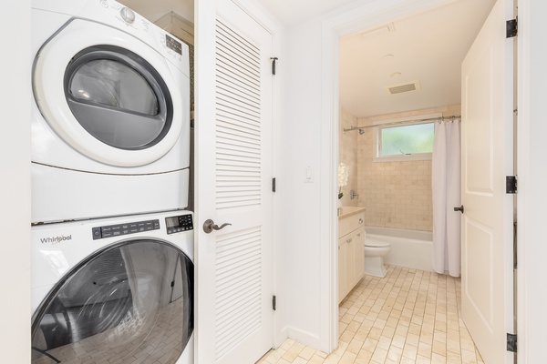 Your in-unit washer and dryer make laundry a breeze, while the full bathroom features everything you need to refresh.