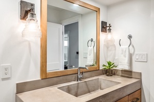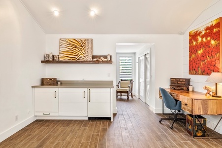 Wake up in your serene bedroom sanctuary, where crisp linens and tropical breezes await through sliding doors to your private lanai.