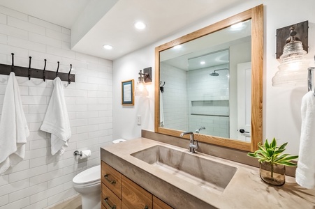 Shower, access to outside. Bathroom for entertainment/game room and bedroom 4