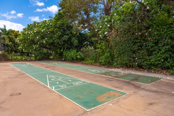 Challenge friends and family to a laid-back game on the shuffleboard court.