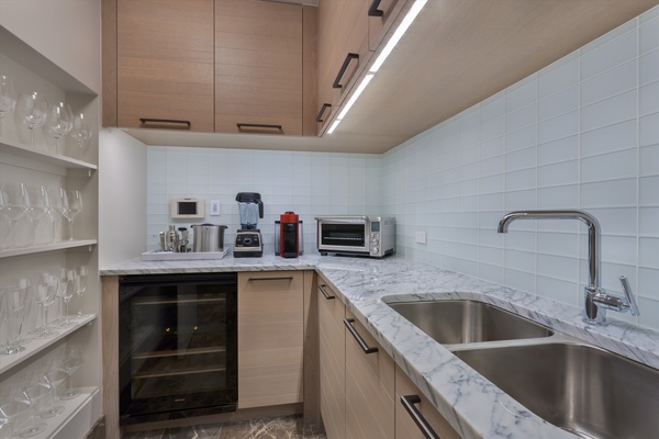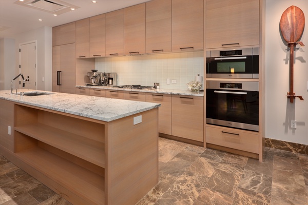 The kitchen is generously equipped as if it was in a private home. We are famous for providing everything needed for true gourmet cooking, fine dining and entertaining. You have use of a wide array of cooking, dining and serving inventory for 8 guests, dual coffee makers, an Espresso machine, Vitamix blender, griddle, rice cooker, waffle maker, crystal barware, cook books and much, much more. 4 varieties of local Maui roasted coffee (espresso beans, dark, regular and decaf) are stocked in 8 ounce bags, fresh for each arrival with real coffee creamers, non-dairy creamer, sugar/sweetener packs and quality tea bags. We just added a large gourmet Thermador gas cooktop in December 2022.