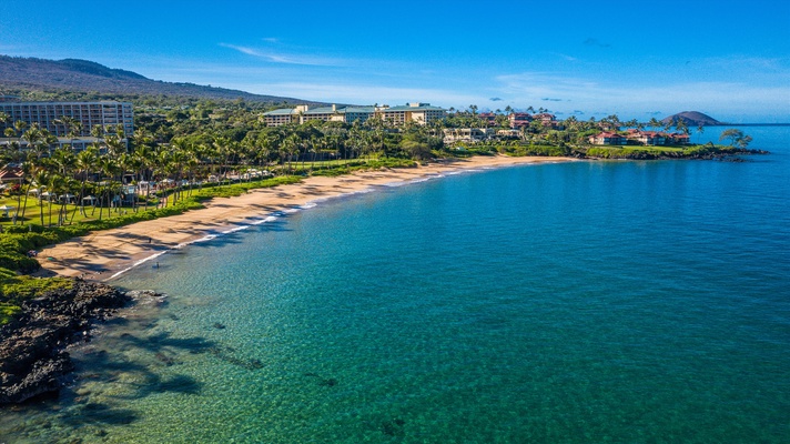 Andaz Maui at Wailea Resort is a sublime tropical eden situated directly on golden Mokapu Beach. With a west-facing location, guests will bask in an abundance of sunshine. Blazing sunsets color the early evening sky, and brilliant moonsets illuminate the deep blue Pacific until late into the evening. Hang out on the beach for a spectacular show of sparkling stars at night. Enjoy a low density, low rise resort where waterfalls, tiki torches, and beautiful blooming flowers and verdant green fauna decorate your surroundings. The expansive swimming pools are a first for Maui. The flowing water begins its journey at the entry lounge, then gently cascades down through sloping terrain until it gently ponds in the large pool directly in front of Villa 811 and just above Mokapu Beach.