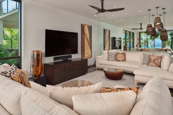 Super thin 75" 4K UHD flat panel Samsung LCD Television, Surround Sound, and now includes Netflix, HBO Max, Showtime, Disney+, Apple TV, Apple Music, Pandora, HD Cable boxes in all rooms all DVR (4 total)