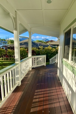Covered lanai with peaceful mountain views.
