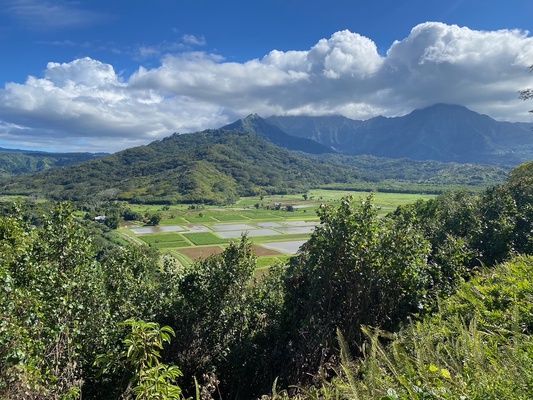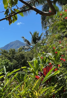 Tropical foliage with dramatic peak views.