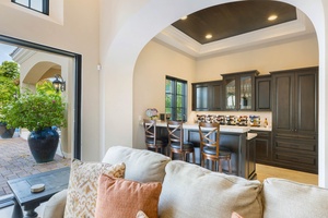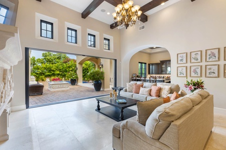 Living room opening to an outdoor patio, seamlessly blending indoor and outdoor spaces for entertaining.